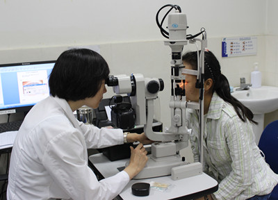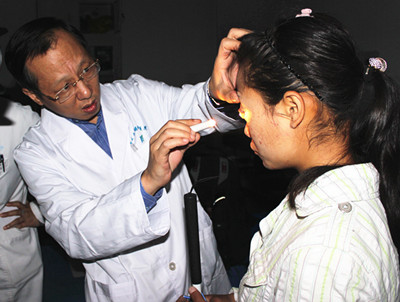 眼底病专家姚进主任为患者检查