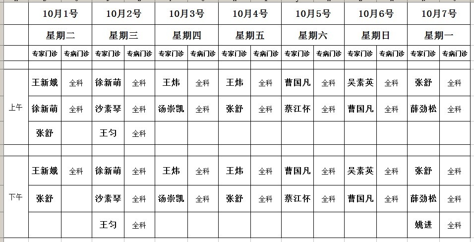 2013年国庆节假日期间专家排班 并暂停网上和电话预约.节后恢复正常.