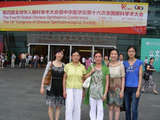 .2011年9月7日-11日第四届全球华人眼科学术大会暨中华医学会第十六次全国眼科学术大会在广州召开。在此次大会上我院蒋沁院长在中日眼底病论坛中进行了题为“滋养动脉眼内结扎及血管瘤切除治疗Von Hippel病”的英文专题讲座。我院对视网膜血管瘤(Von Hippel病)患者实施经玻璃体切割行滋养动脉眼内结扎术,手术在吊顶灯下完成玻璃体切割,在视盘和瘤体间近瘤体处的滋养动脉处行眼内电凝造孔,自滋养动脉一侧内造孔穿入从另一侧的内造孔处传出,双手操作结扎滋养动脉。激光封闭内造孔,填充硅油。术后血管瘤瘤体缩小,FFA显示滋养动脉结扎远端段无荧光充盈,流体荧光明显减弱伴充盈缺损,回流静脉明显较前变细。经玻璃体切割行滋养动脉眼内结扎手术可有效治疗较大的视网膜血管瘤。整个讲座过程中,蒋院长全英文讲述疾病的手术过程,现场掌声不断,受到亚洲各国眼科专家的好评。此类手术难度很高,同时也充分显示了我院的手术操作技巧,展示了具有水准的诊疗技术和方法,得到参会者的一致认可。