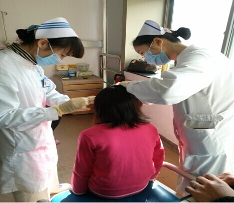 片段二,操作考核:我们苦练基础操作和急救技能,为了的为患者服务,我们在自己身上做实践,只为能用娴熟的技术为患者抚平痛苦。