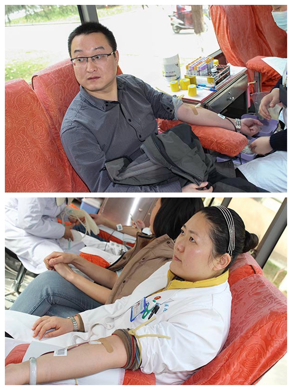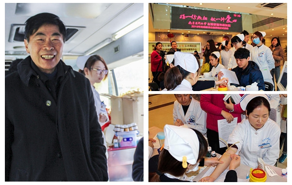 今天上午10时许,采血车停在了南京医科大学大楼前,接着一拨又一拨穿着白大褂的医务人员陆续来到了现场,挽袖献血。南京医科大学附属眼科医院共有19名医护人员参与献血。他们中有先后多次参与献血的积极分子,也有初次献血的参与者,其中,李振光同志先后20次参与献血,这次又一次献血400CC。他们以医护人员的实际行动参与到无偿献血活动中。