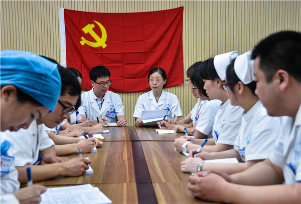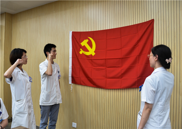 2015年8月我院党支部组织新党员学习党的路线、方针、政策,入党宣誓,表彰优秀党员。