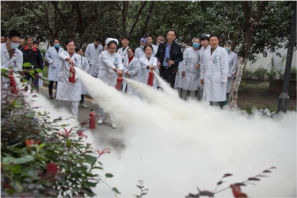 11.10南京医科大学眼科医院举行消防安全宣传教育活动,通过举行病区紧急疏散、急救演练、自救灭火演练、教育培训等,提高了消防安全意识和急救、自救消防能力。