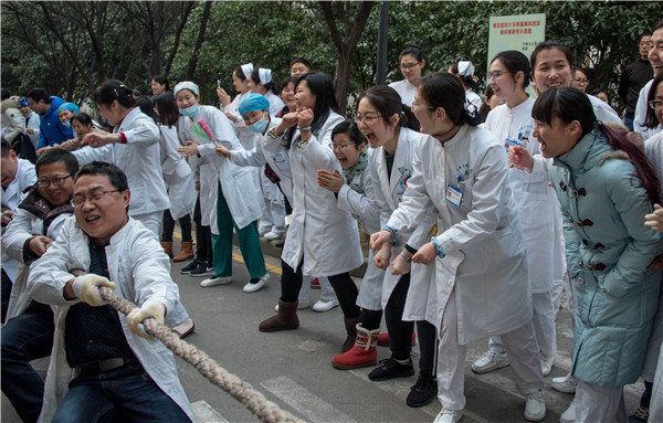 南京医科大学附属眼科医院每年辞旧迎新,都要举办拨河比赛、乒乓球比赛、个人体育达标、文艺晚会等丰富多彩的文体活动,以活跃职工的业余文化生活,增强团队意识、拼搏精神,以良好的状态投入到新的一年工作中。