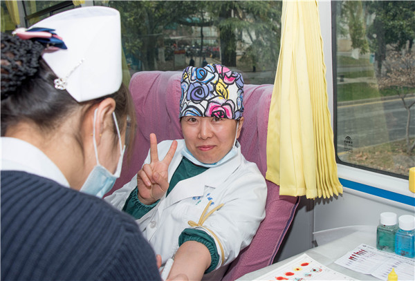 3月1日上午,当南京市红十字血液中心的采血车刚在眼科医院住院部西门前停稳,参与献血的医护人员安排好手头的工作,从各自岗位上急匆匆来到献血现场,递上早已准备好的无偿献血登记表,撸起袖子献上爱心。当一滴滴鲜红的血液滴满献血袋时,就如爱的暖流,流向需要帮助的人,传递爱心的接力。他们中有无数次参与无偿献血的“老油子”,也有次参与献血的“新兵”,尽管有点小紧张,所有人脸上绽放的是笑容。医院保卫科4人全科参与献血,成为义务献血的排头兵。当天医院共有21名同志参与了无偿献血活动。