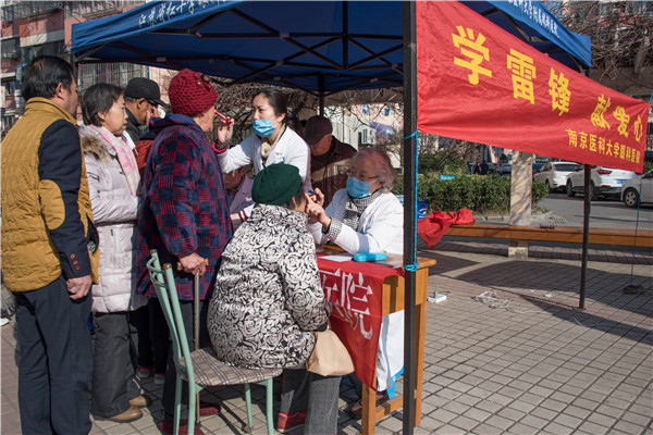 为了把学习雷锋活动引向深入,南京医科大学眼科医院党支部把学习雷锋与本职工作结合起来,利用省红十字会“博爱光明行动”项目平台,持续开展学雷锋眼科社区义诊活动,发动党员干部带头积极参与,医院每天安排学雷锋眼科义诊小组到南京市各社区走街串巷,对白内障及眼病患者进行筛查,每到一个小区筛查眼病患者都有近百人,不少社区居民听说有三甲眼科医院到社区义诊,早早就等候在义诊现场,其中不乏一些腿脚不方便的眼科患者。医院对筛查出来的白内障及其它眼病患者,安排专车接送做进一步免费检查,对低收入家庭的白内障患者手术治疗提供手术费资助,医院这些利民活动受到老百姓的称赞和欢迎,他们说:眼科医院的医护人员实实在在、诚心诚意帮助人,他们是真学雷锋,这才是新时期弘扬的雷锋精神!