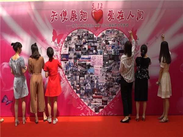 为了庆祝第95个护士节,倡导救死扶伤精神,激励护理人员爱岗敬业,奋发进取的精神,医院护理部在护士节到来前夕,就精心筹划各种活动。医院精心排练舞蹈“翻身农奴把歌唱”,参加南京市纪念5.12护士节舞蹈比赛受到好评,顺利进入决赛。同时,结合本职工作举办多场护理业务讲座和培训。5月14日的“感恩母亲节、庆祝护士节”签名插花活动,把庆祝活动推向高潮,他们满怀兴奋和喜悦在纪念墙上签名留影;边学边做,制作一束束插花,就如一份爱,献给年长的护理前辈,献给母亲,表达自己的爱。