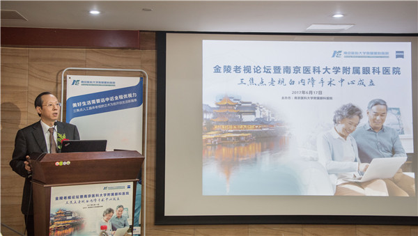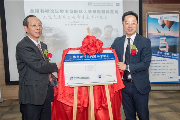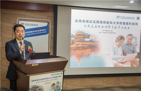 6月17日下午,金陵老视论坛暨南京医科大学附属眼科医院三焦点老视白内障手术中心揭牌仪式在医院会议室举行,标志着三点焦人工晶体植入术,在治疗白内障、老花眼老视手术上,进入了规范化、精益化轨道。去年以来,南京医科大学附属眼科医院在江苏开展三焦点人工晶体植入手术,已经成功进行了几十例三焦点人工晶体植入术,经过一年多的精心技术准备,在江苏首先正式成立三焦点老视白内障手术中心,为中老年老视患者带来福音。