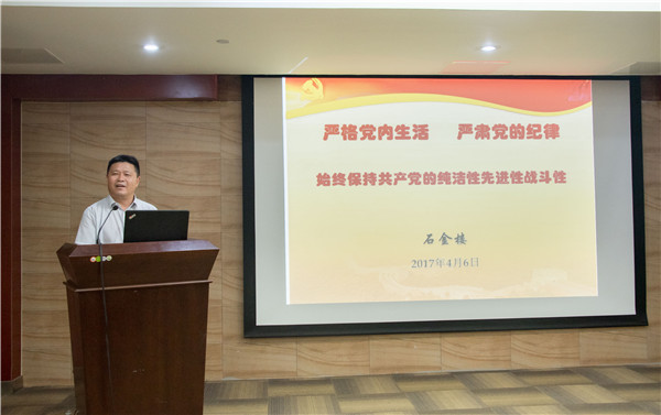 石金楼副书记从新时代新挑战、新思想新举措、新要求新格局、新征程和新特征四个方面,阐述了保持共产党员的纯洁性、性、战斗性的重要性。他分析了目前我们所处的新时代以及面临的严峻挑战,通过详细解读《关于新形势下党内政治生活的若干准则》《中国共产党党内监督条例》等文件提出“四个意识”、“四个服从”、“反腐败新常态”三个新格局及新要求。石书记从宏观、微观两个方面联系医院发展实际,对我院党员干部提出了希望和要求,他指出:共产党员要牢记入党宣誓,不忘初心,要廉洁自律;遵守党纪党规,守住底线,不踩红线,营造风清气正的和谐氛围,地为病人服务;用共产党员标准严格要求自己,自觉做合格的共产党员。