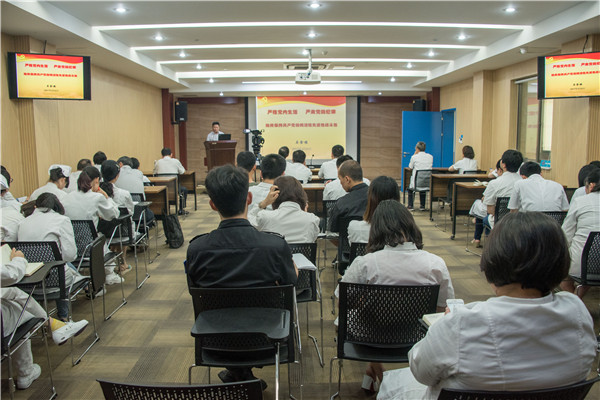 6月29日下午,在建党96周年之际,南京医科大学党委副书记、纪委书记石金楼为我院党员、干部上了一堂,《严格党内生活,严肃党的纪律,始终保持共产党的纯洁性性战斗性》专题党课。医院党员、干部及部分老专家60余人参加了听课。