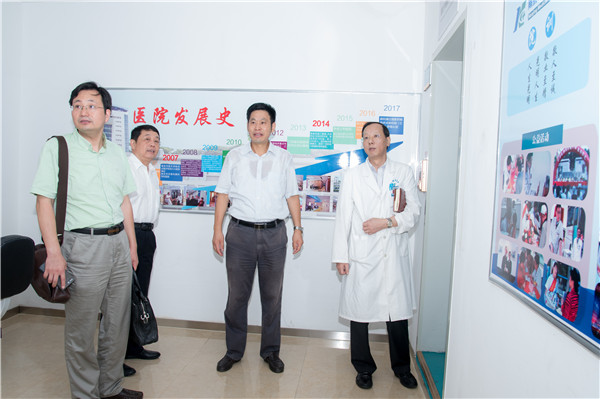 8月23日上午,南京医科大学党委书记王长青在附属眼科医院蒋沁院长陪同下视察了医院门诊、实验室、职工之家,听取了医院工作汇报。他对眼科医院建院十多年来在医、教、研各方面所取得的成绩给予了充分肯定,对医院建设及未来的定位和发展方向提出了建议和要求,校党办主任沈瑞林、第四临床医学院院长邵海亚陪同调研。