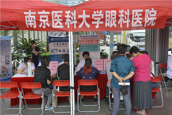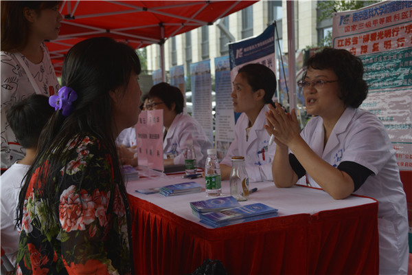 9月10日由南京市卫计委组织的健康江苏服务百姓大型义诊周在河西万达广场举行,南京医科大学附属眼科医院派出汤崇凯主任、尹翠云主任、姜静主任、马伟华主任等多名医护人员组成的义诊小组,参加了义诊周活动,整个义诊活动共为近1000余人进行了眼科检查和咨询服务,受到市民的称赞。