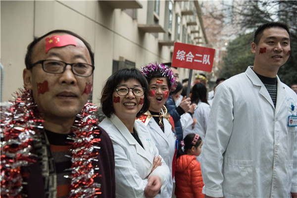 今年的比赛另一个亮点就是全员参与,全员动员,啦啦队五彩缤纷,啦啦队中有住院患者,也有职工家属,如医院的重大节日!整个活动洋溢着快乐喜庆的气氛!
