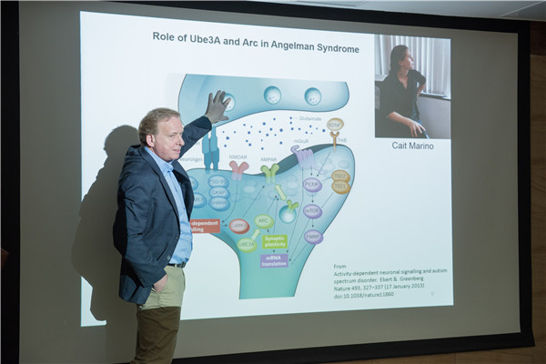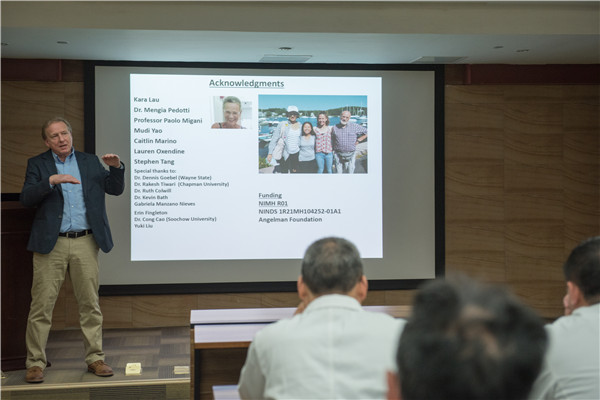 2018年1月3日下午,美国布朗大学John Marshall教授来我院进行学术交流。交流题目:“BDNF通路激活剂治疗天使综合症”。John Marshall教授演讲后,我院多名年轻医生用英语与John Marshall教授进行了交流探讨。
