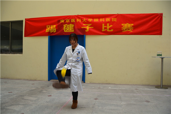 为庆祝“三八”妇女节,南京医科大学附属眼科医院举行了首届踢毽子比赛,本次踢毽子比赛受到了全院女职工积极响应和踊跃参加,比赛采用2分钟计时,数量多者为胜。