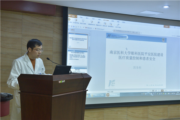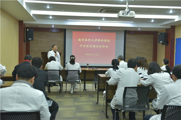 2018年3月21日下午,南京医科大学眼科医院召开平安医院建设分析会,总结半年来创建平安医院的经验,分析医疗、教学、科研及日常管理工作存在的问题及对策,会上,医务科、保卫科、护理部、后勤部、门诊部、实验室等12个科室分别介绍了安全管理工作情况,会议由于志平副院长主持,副院长姚进、曹国凡出席了会议,中层以上干部和安全员参加了会议。