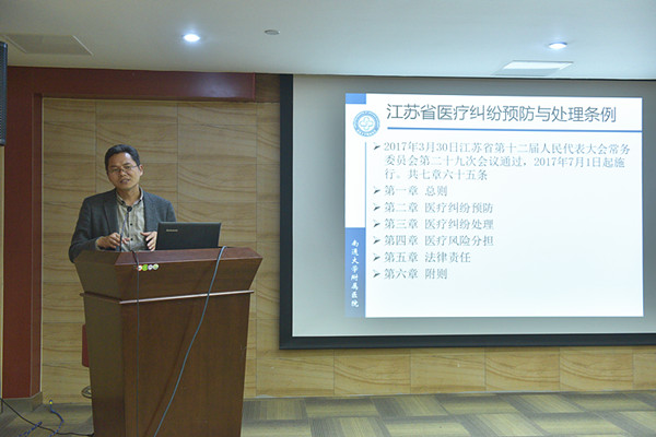 2018年4月11日,南通大学附属医院仇永贵主任来院进行医疗法规规范化培训讲座。全院干部职工参加了培训。