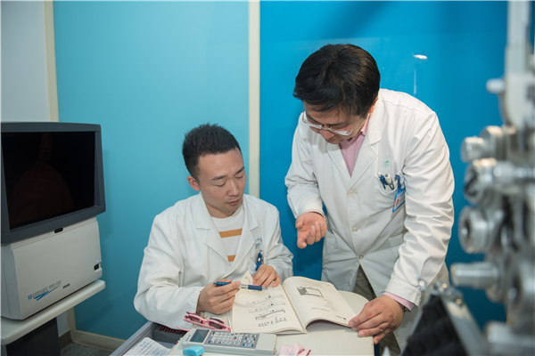 他说:要想成为一名合格的验光师,要不断学习进取,学习新知识,掌握新技能。在南京医科大学眼科医院,有很多验光设备,比如:自动验光仪、磨片机等都达到了世界顶级水平,只有熟悉和掌握这些高新技术设备,才能验得准验得快。为了尽快入门,他一方面向师傅求教,学技巧;另一方面,查资料学习,加班加点练手功、眼功,他用快的时间对所有验光设备熟练掌握,操作得心应手。