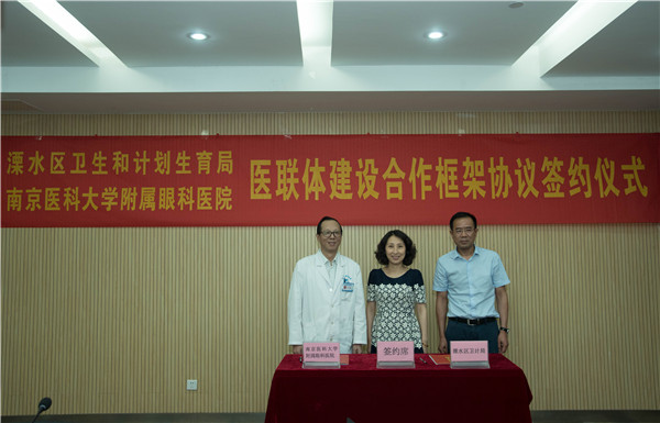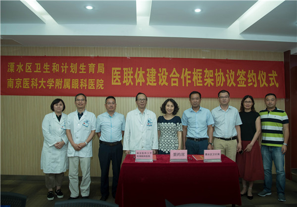 签约仪式上,南京市卫计委王玮处长指出,此次南京医科大学附属眼科医院与溧水区卫计局眼专科医联体签约,模式好、内容新、有抓手,主要体现在“院府签约”、三级诊疗合作(三级专科医院+二级医院+一级卫生服务中心)合作模式上,在合作内容上明确了技术帮扶、人才培养、双向合作转诊及眼科常见病、慢性病眼科疾病等具体内容,使医联体合作具体,不流于形式,富有成效,为南京市医联体专科医联体建设,探索出了一条可行的合作模式。