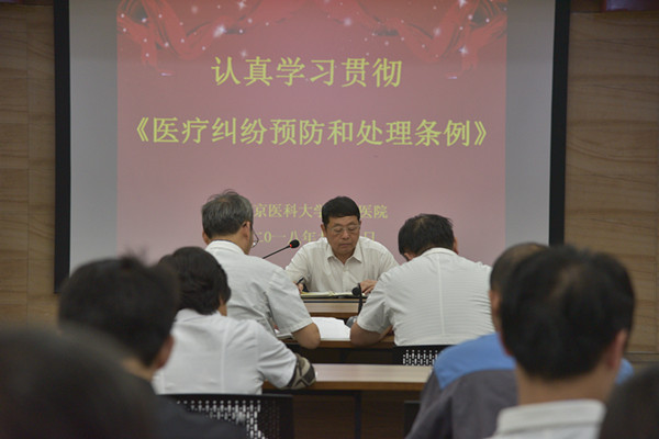 2018年9月10日,南京医科大学附属眼科医院组织中层干部认真学习“医疗纠纷预防和处理条例”,提高服务意识,规范就医行为,为患者服务。