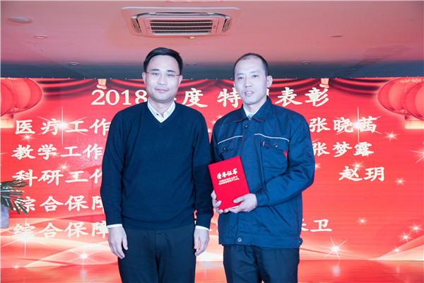 1月26晚,南京医科大学眼科医院门诊二楼,灯火辉煌,欢声笑语,热闹非凡,医院全院职工欢聚一堂,隆重举行2018年年终总结表彰大会。南京医科大学党委常委、副校长王林到会致词,南京医科大学第四临床医学院院长邵海亚、南京医科大学康达总公司总经理王林到会并为优秀员工颁奖。年终总结大会上,蒋沁院长作医院工作总结报告,于志平副院长主持会议并宣读关于表彰优秀工作者、特别奖项获得者的决定。总结表彰会结束后,举行了丰富多彩的迎新春文艺晚会!