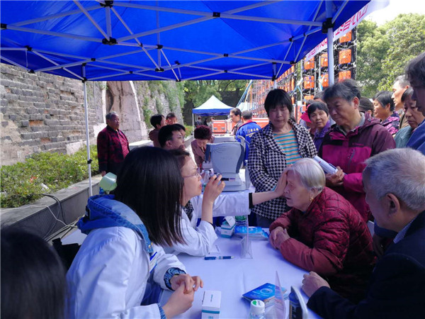 5月8日,为纪念第72个“5.8”世界红十字日,大力弘扬“人道、博爱、奉献”的红十字精神,江苏省红十字会主办的“5.8”红十字博爱日大型义诊活动在汉中门广场举行。我院作为江苏省红十字眼科医院积极参与本次义诊,派出了江苏省红十字会健康教育科普专家蔡江怀主任等多名医护人员组成的义诊小组。一大早,他们携带眼压计、电脑验光仪和血压计到义诊现场,为老百姓测视力、测眼压和血压,专家对每一位前来咨询的人都仔细检查,耐心回答,还详细介绍眼科健康知识和注意事项,受到了大家一致的好评。