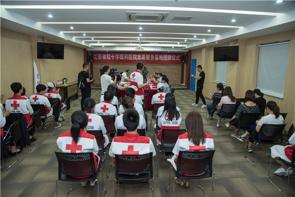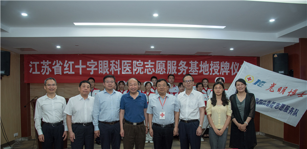 揭牌仪式上蒋沁院长:“人道、博爱、奉献”红十字精神,是医者之魂,也是医院立院之本,医者仁心,以高尚情操,行仁爱之术,无愧于天地,无愧于内心。“志愿服务基地”的成立,将有力推动医院服务患者、服务社会公益的能力和水平,进一步增强医护人员的社会责任感和使命感,为健康江苏作出更大的努力,让更多的人恢复光明分享爱心!