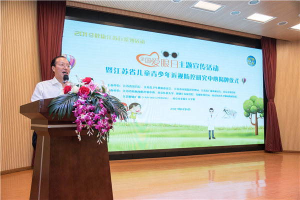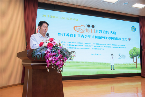 江苏省教育厅体卫艺处张鲤鲤处长主持并宣读《省教育厅关于同意成立江苏省儿童 青少年近视防控研究中心的批复》