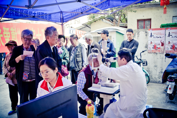 2019年11月20日上午,“博爱光明行”活动走进南京市玄武湖街道樱驼花园社区。社区服务站人头攒动,南医大附属眼科医院的义诊医护人员正有条不紊的为居民们测视力、筛查白内障等眼科疾病。当天,义诊小组共为90多名群众进行了眼科检查,筛查出白内障适应症7名并指导他们去医院做进一步免费检查。 此社区筛查出的7名白内障适应症中,有5名适应症者来医院做了进一步的检查。其中3名适应症者符合做白内障手术的条件,并申请了红十字会手术资助,预约了手术时间。