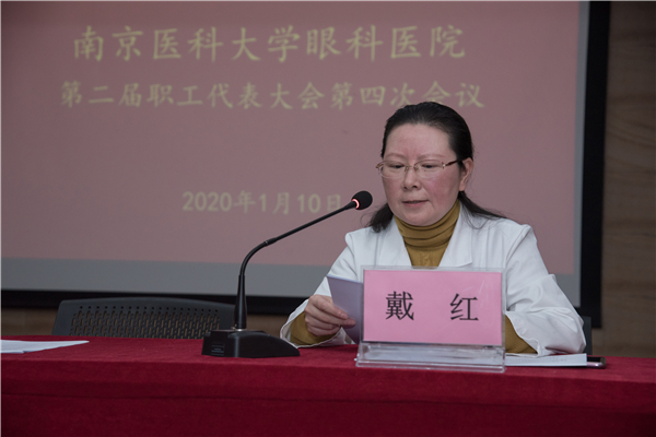 2020年1月10日下午,南京医科大学眼科医院第二届工会委员会第二届职工代表大会第四次会议,在医院行政会议室隆重召开,工会主席戴红、医院蒋沁院长、于志平副院长、工会委员王志及职工代表50人出席会议。于志平副院长主持会议。