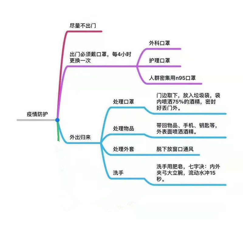 一是勤洗手 在咳嗽或打喷嚏后;照护病人时;制备食品之前、期间和之后;饭前、便后;手脏时;处理动物或动物排泄物后,记得洗手。手脏时,用肥皂和自来水洗;手不是特别脏,可用肥皂和水或含酒精的洗手液洗手。