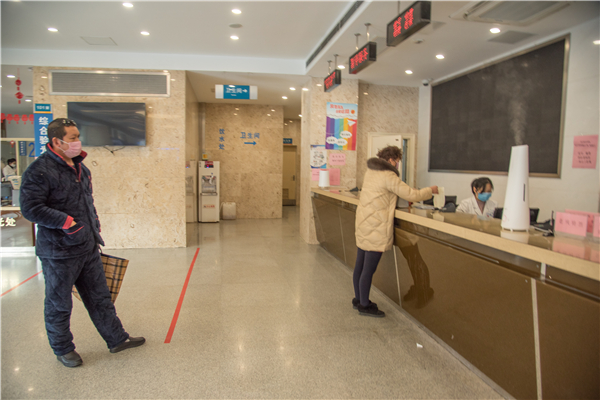 为防止就诊时人员聚集,在挂号交费、就诊等环节,设置一米五等待区,安排专人负责人员分流。同时,开放多个急诊室分流人员,防止急诊聚集,确保一人一消,“一医一患一诊”。