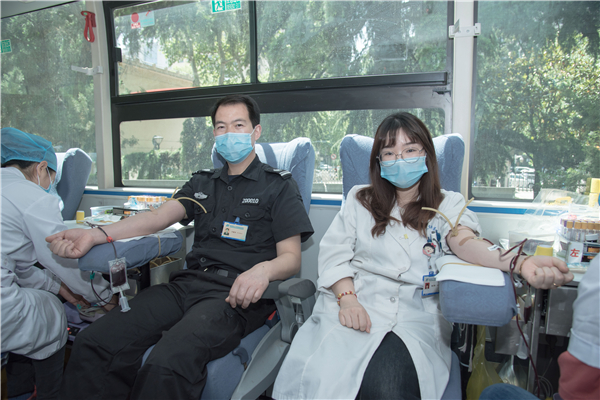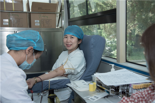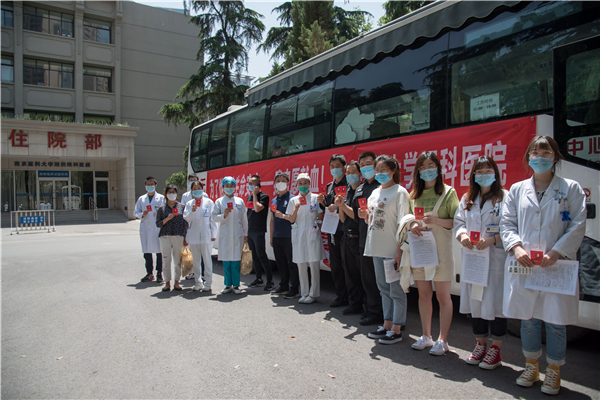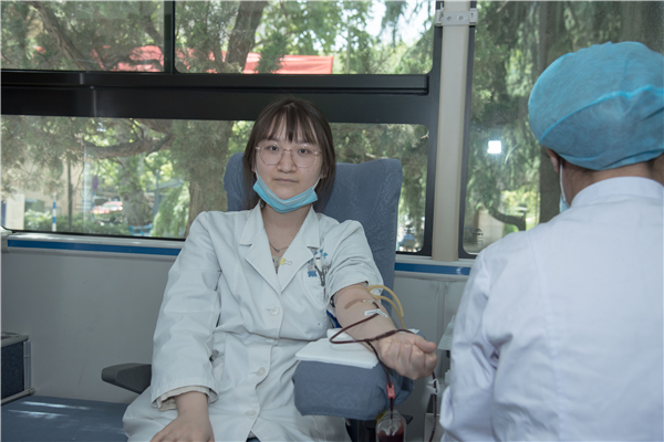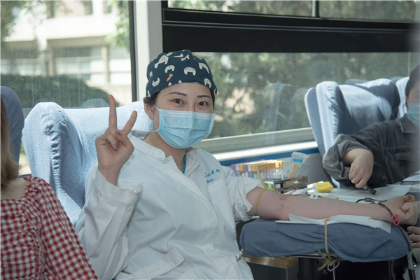 5月13日上午,在南京医科大学眼科医院住院部西门停着南京市血液中心的采血车,眼科医院的医护人员安排好手头的工作,经过登记备案,测量体温、血压,手部消毒……一系列程序后,依次走进献血车进行无偿献血,他们面对疫情冲锋在前,无偿献血带头捐献红色爱心。