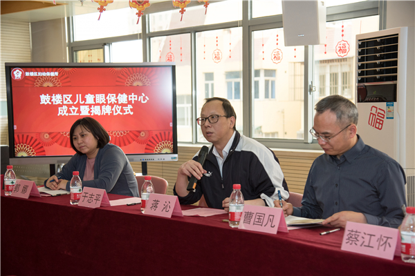 揭牌仪式上,眼科医院蒋沁院长,简要介绍医院的发展情况和医院在眼科医联体、儿童青少年近视防控所做的工作,他说:眼病防治专业性比较强,当前儿童青少年近视防控成为各级公共卫生防控重要关注点之一,习总书记专门作了指示,“鼓楼区儿童眼保健中心”的成立顺应了这个防控大方向,眼科医院作为省市两级近视防控专家组指导单位,医院将在技术、人力、医疗资源、人才培养等方面给予全方位支持,为鼓楼区儿童眼保健工作作出贡献。