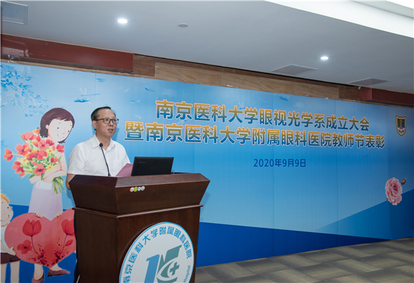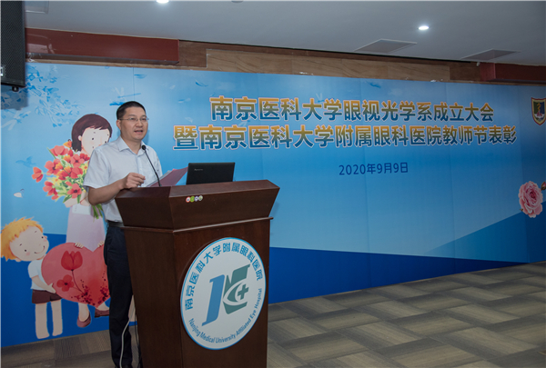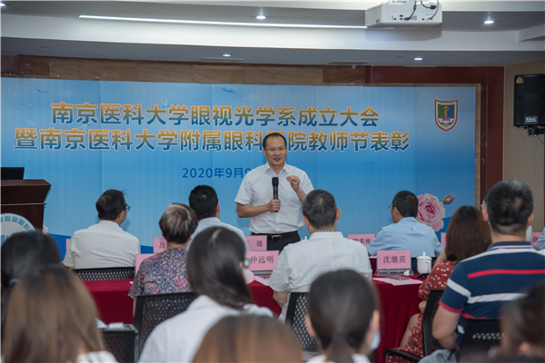 9月9日,在第36个教师节来临之际,南京医科大学眼视光学系成立大会暨教师节表彰会在南京医科大学附属眼科医院举行,南京医科大学副校长丁强出席大会致词,并与眼视光学系主任、附属眼科医院院长蒋沁共同揭牌。