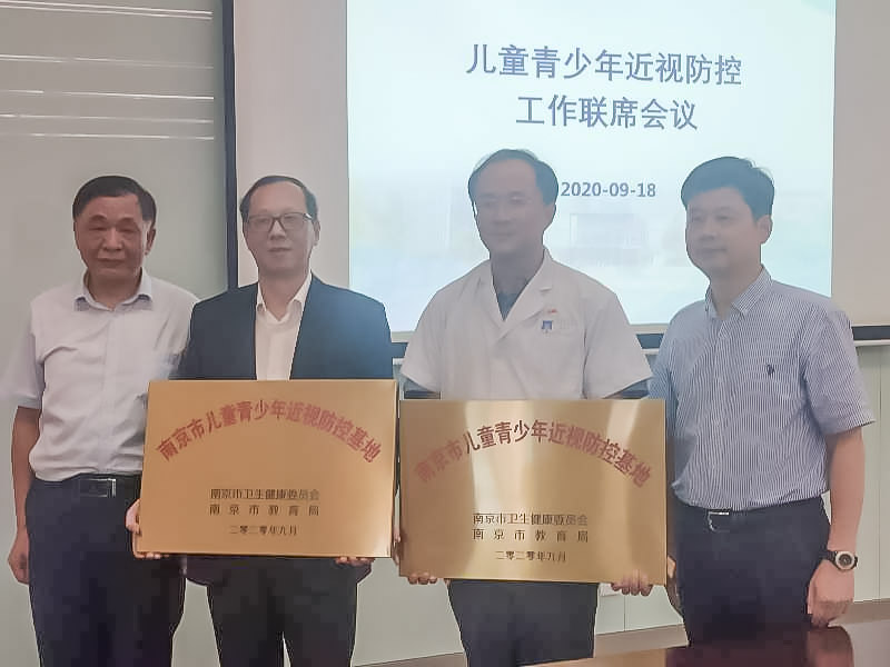 2020年9月18日,南京市召开举行儿童青少年近视防控工作联席会议暨“南京市儿童青少年近视防控基地”授牌仪式。南京市教育局、卫健委、体育局、财政局、人社局等相关部门领导及相关医疗机构负责人参加了会议及授牌仪式。会上,南京医科大学附属眼科医院被授“南京市儿童青少年近视防控基地”。