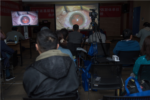 蒋沁院长在理论授课前,亲自上台手术演示了不同类型白内障超声乳化手术,学员同步3D立体直播观看,之后,蒋院长逐一回答了学员的提问,学员感叹到:真没有想到,看似枯橾的白内障手术,在专家高超的手中演绎得如此出神入画,自己一定要好好学习,用自己良好的医术服务于患者。