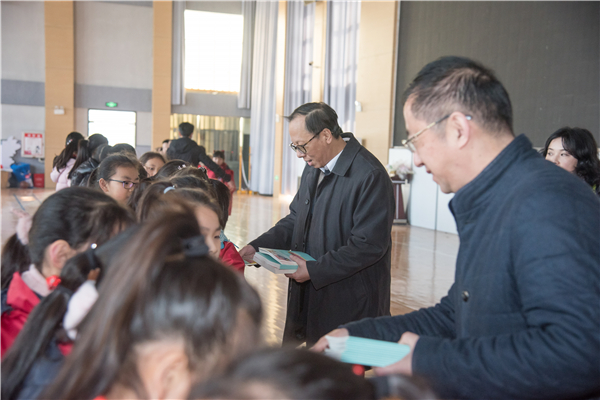 签约和启动仪式上,区委教育工委书记许迎新与眼科医院党支部书记、副院长姚进共同签订了“六合区儿童青少年近视防控”项目协议,观看了眼科医院近视防控大数据平台实时筛查数据演示,与会领导视察了视力筛查平台实时采集现场,并向学生赠送了由南京市中小学生保健所和南京医科大学附属眼科医院共同编写出版发行的“小学生近视防控手册”。