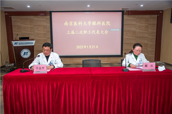 2022年1月21日下午,南京医科大学附属眼科医院第三届二次工会委员会次职工代表大会,在医院行政会议室隆重召开,工会主席戴红、副院长于志平、工会委员及职工代表51人出席会议。工会主席戴红主持会议,于志平副院长作2021医院工作报告,工会主席戴红作2021年工会工作报告。