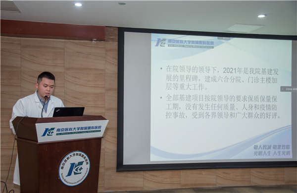 大会上,于志平副院长所作的医院工作报告,得到与会代表的肯定和共鸣,他在报告中指出:过去的2021年,是医院建设发展史上具有里程碑意义的一年,六合院区顺利建成营业,门诊楼加层扩建改造如期进行,医院规模迈上新台阶;以高质量为核心的医疗服务水平进一步提升;教学科研成果喜人;党组织建设卓有成效,医院管理保障工作更加有力高效……这些成绩的取得,得益于全院职工辛勤的付出和努力,祝愿医院新的一年百尺竿头更进一步。