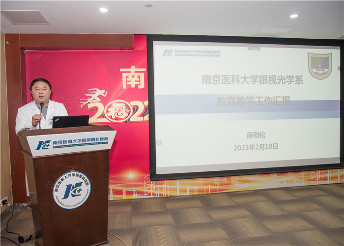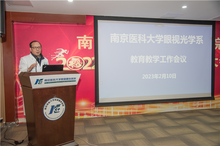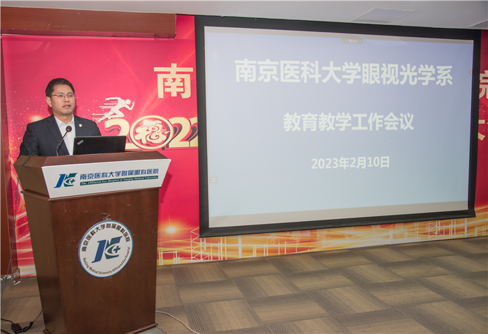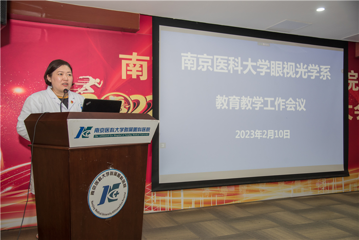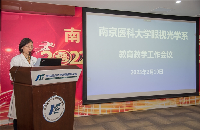 2023年2月10日,南京医科大学眼视光学系教育教学工作会议在南京医科大学附属眼科医院举办,出席本次会议的领导有第四临床医学院党委书记陆铭书记,眼视光学系主任蒋沁院长,眼视光学系副主任薛劲松副院长,眼视光学系副主任、眼科学教研室主任姚进副院长,眼视光学教研室主任曹国凡副院长,附属眼科医院科教科科长商卫红主任,教学督导仲远明主任、张珠莲主任,以及眼视光学系全体教师。本次会议旨在总结2022年度学系教育教学工作,表彰表现突出教师,促进教学经验交流,明确下一年度教学工作计划,进一步强化专业建设,培养高素质视光专业人才。