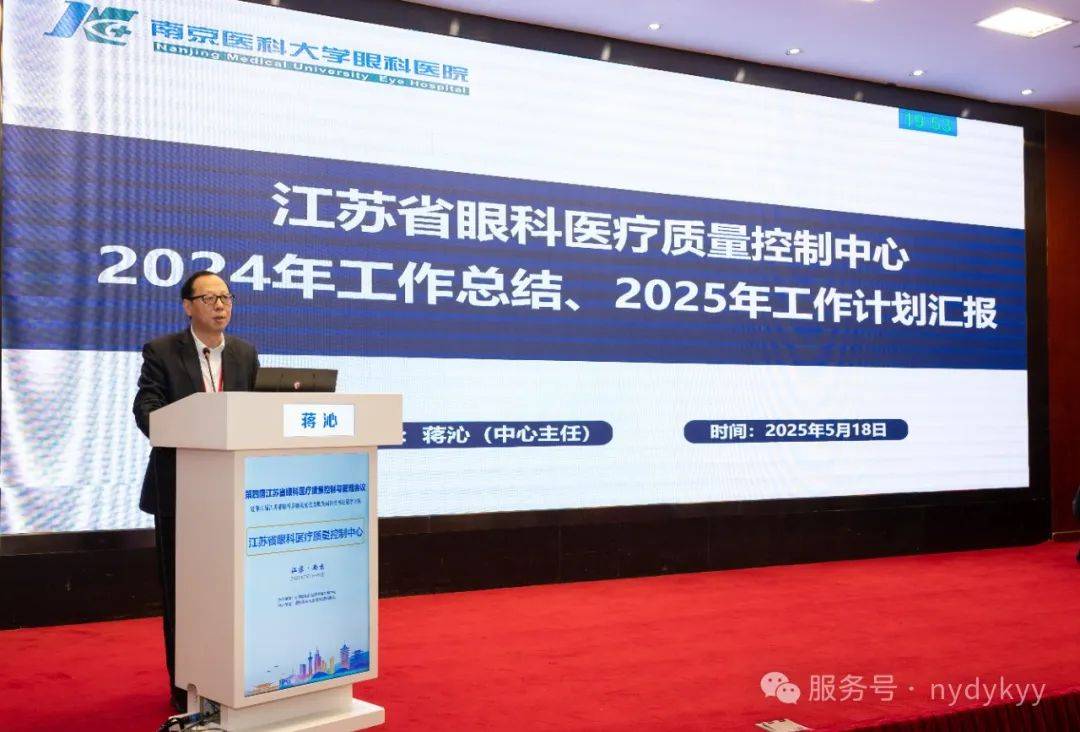 2025年5月16日至18日,由江苏省眼科医疗质量控制中心主办,南京医科大学附属眼科医院承办的,“第四届江苏省眼科医疗质量控制与管理会议”在南京圆满举行,江苏省卫健委医管中心医疗质量评价管理处处长赵青视频讲话,江苏省眼科医疗质量控制中心主任蒋沁教授致辞,并对2024年质控中心工作进行了汇报,对2025年工作进行了部署,曹国凡教授主持开幕式。来自省内外知名专家、眼科同仁、省眼科医疗质量控制中心质控委员、秘书及省内医疗机构的眼科负责人、眼科质控员等1000多人(次)与会。共有60多位专家进行了交流。