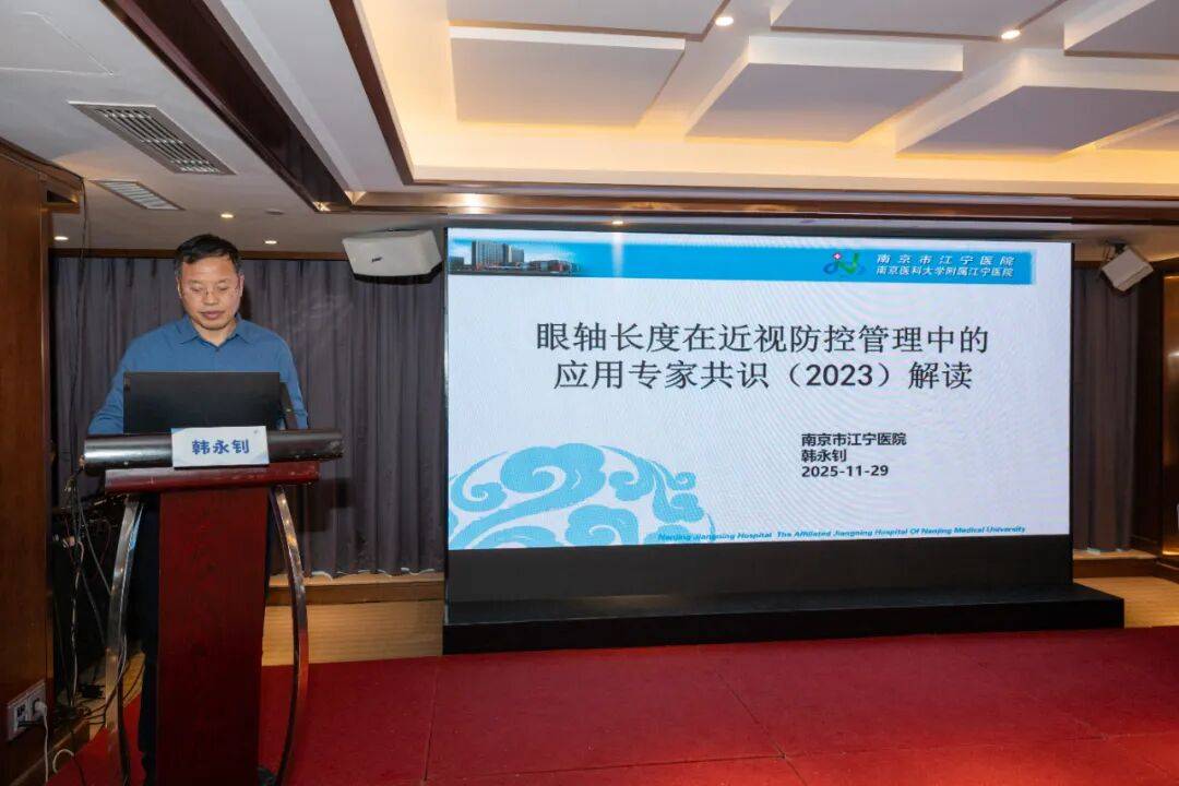 南京市卫生健康委医政医管处处长魏强出席会议并发表讲话。市眼科质控中心秘书曹国凡受蒋沁主委委托,汇报了2025年南京市眼科医疗质量控制工作的现状和重点内容,系统总结了本年度质控中心的工作成果、存在问题及改进措施,并对未来工作提出了明确要求。
