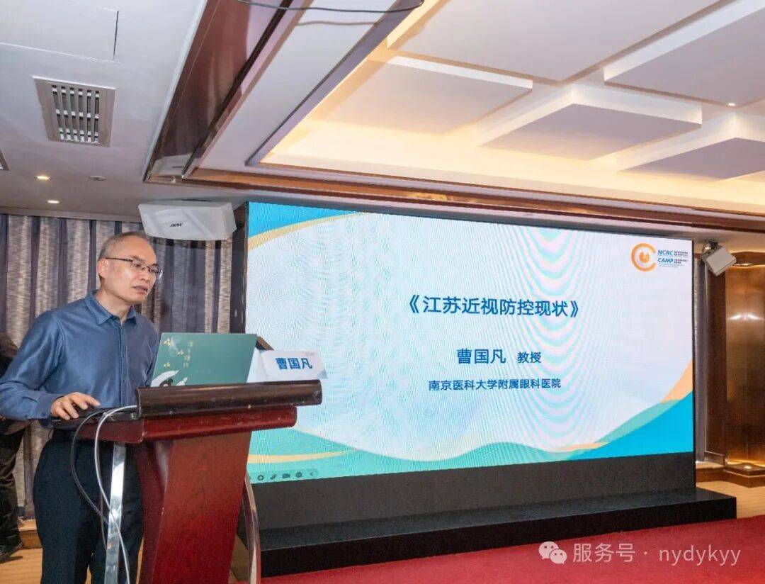 在大会主题报告环节,曹国凡教授受大会共同主席、江苏省儿童青少年近视防控研究中心主任蒋沁教授委托,详细介绍了“江苏近视防控现状”。报告系统梳理了江苏省在近视防控工作中取得的显著成效,重点阐释了以“政府主导、全民参与”为核心,构建家庭、学校、医疗三方高效联动机制,并辅以科学预防与精准干预的成功模式。