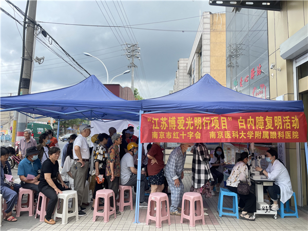 6月30日上午,南京医科大学附属眼科医院的党员、入党积极分子、团员,组成的博爱光明行义诊医疗队,与江宁区淳化街道陵里社区党员干部开展为民服务眼科义诊,义诊现场党旗迎风飘扬,胸前佩戴党徽的党员医护人员,忙碌着为群众测视力...
