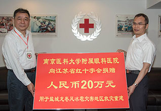 6月23日,江苏省盐城市阜宁、射阳等地出现强雷电、短时强降雨、冰雹、雷雨大风等强对流天气,局地遭龙卷风袭击。造成重大人员伤亡和财产损失,为支援灾区重建,我院于6月27日通过江苏省红十会向盐城灾区捐款20万元。